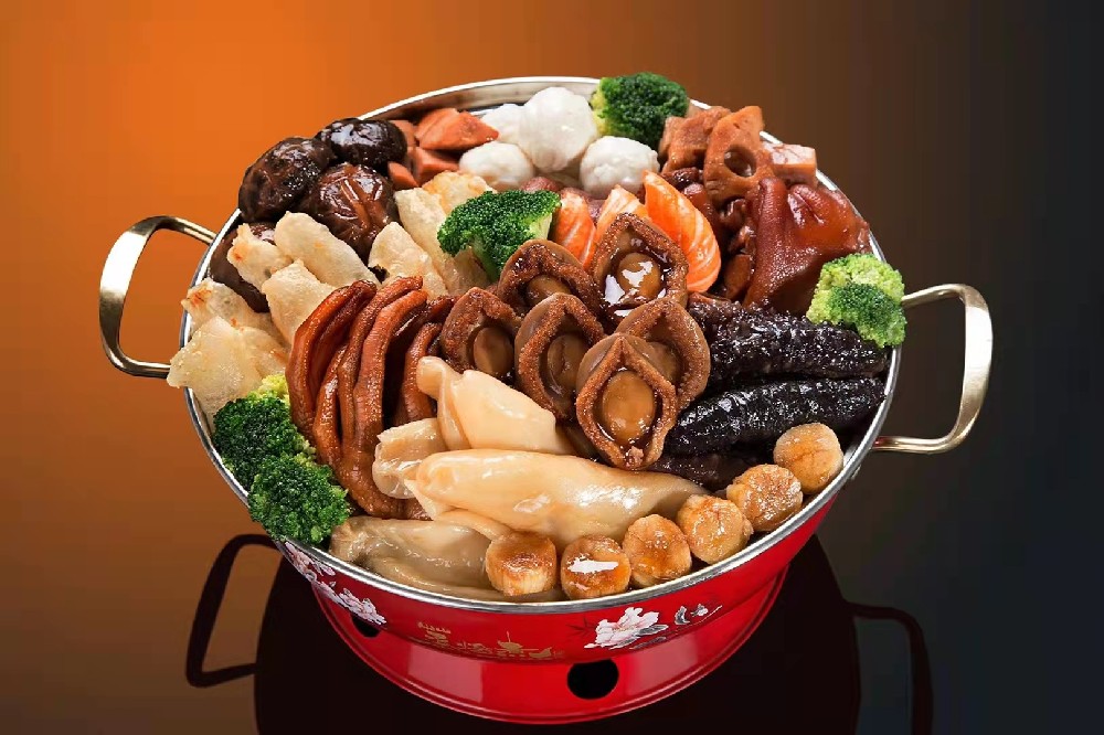 盆菜,是廣東的傳統代表菜,它匯集有飽滿Q彈的鮑魚、軟糯可口的鵝掌和花膠、十分入味的各類素菜等多種素材。味道鮮美,滿滿一盆堆放如小山般的盆菜,···...